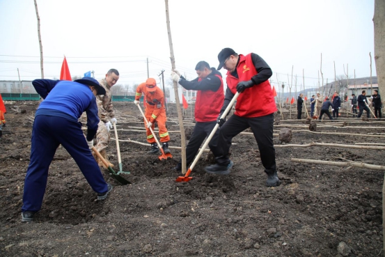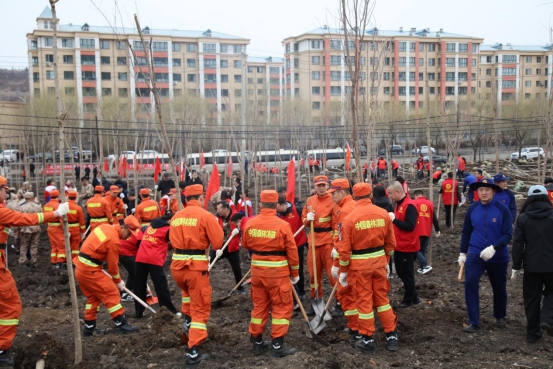 活動現場,全局職工與現役官兵、消防指戰員們一起充分發揚軍人不怕苦、不怕累的優良作風,手持鐵鍬,干勁十足地挖坑鏟土;默契配合,扶苗、培土、澆水,每一個環節都做得一絲不茍;齊心協力將一株株樹苗穩穩地植入泥土中。