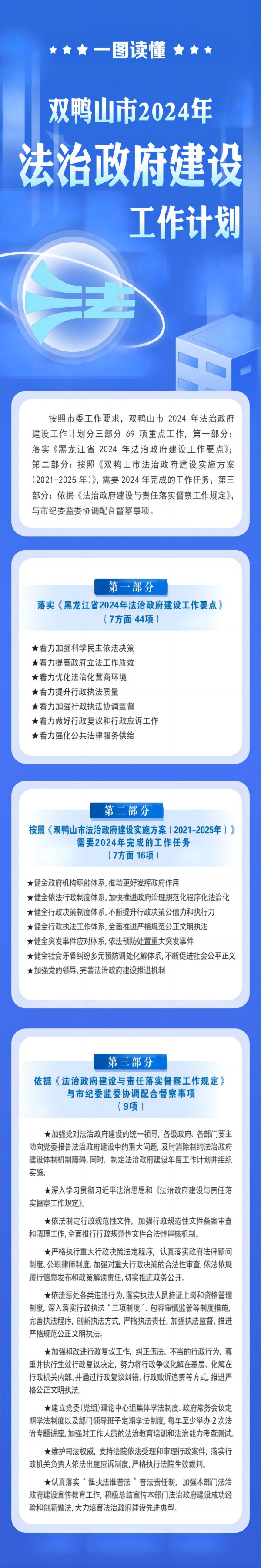 - 名稱:【一圖讀懂】《雙鴨山市2024年法治政府建設工作計劃》政策解讀
