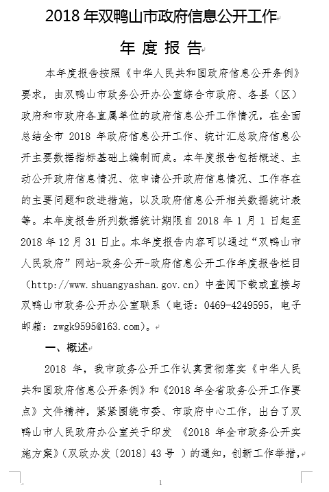 - 名稱: 雙鴨山市2018年政府信息公開工作年度報告
