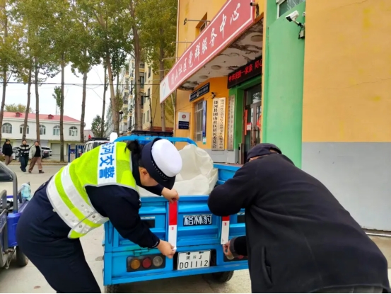 民警在走訪中發現,許多老年人代步使用的電動三輪車、人力三輪車缺少必要的安全反光裝置,在黎明、黃昏或夜間光線不佳的條件下行駛存在隱患風險。為此,民輔警隨身攜帶反光標識貼,現場為老人們停放的車輛進行免費粘貼,叮囑老人“被看見,才安全”。